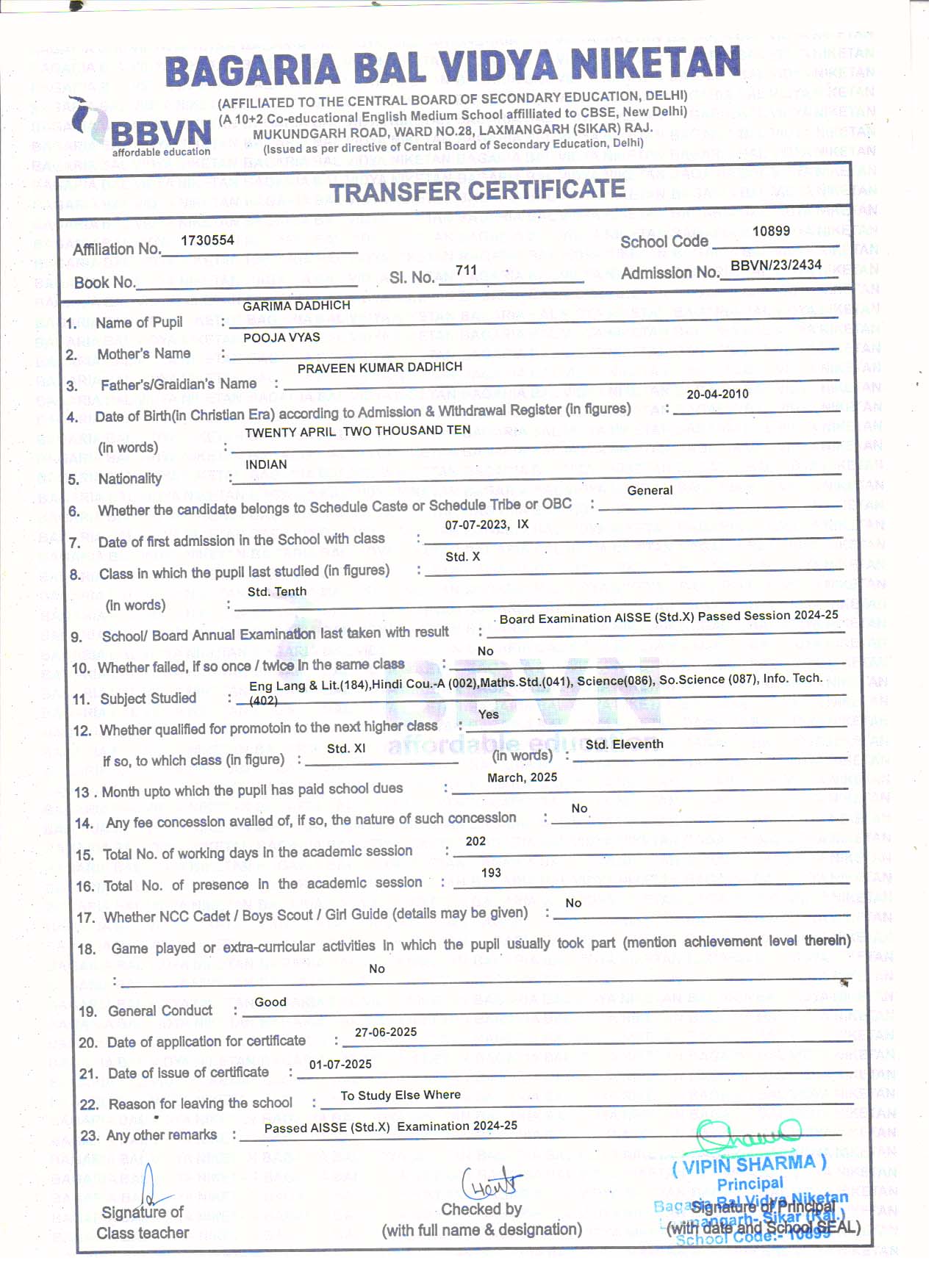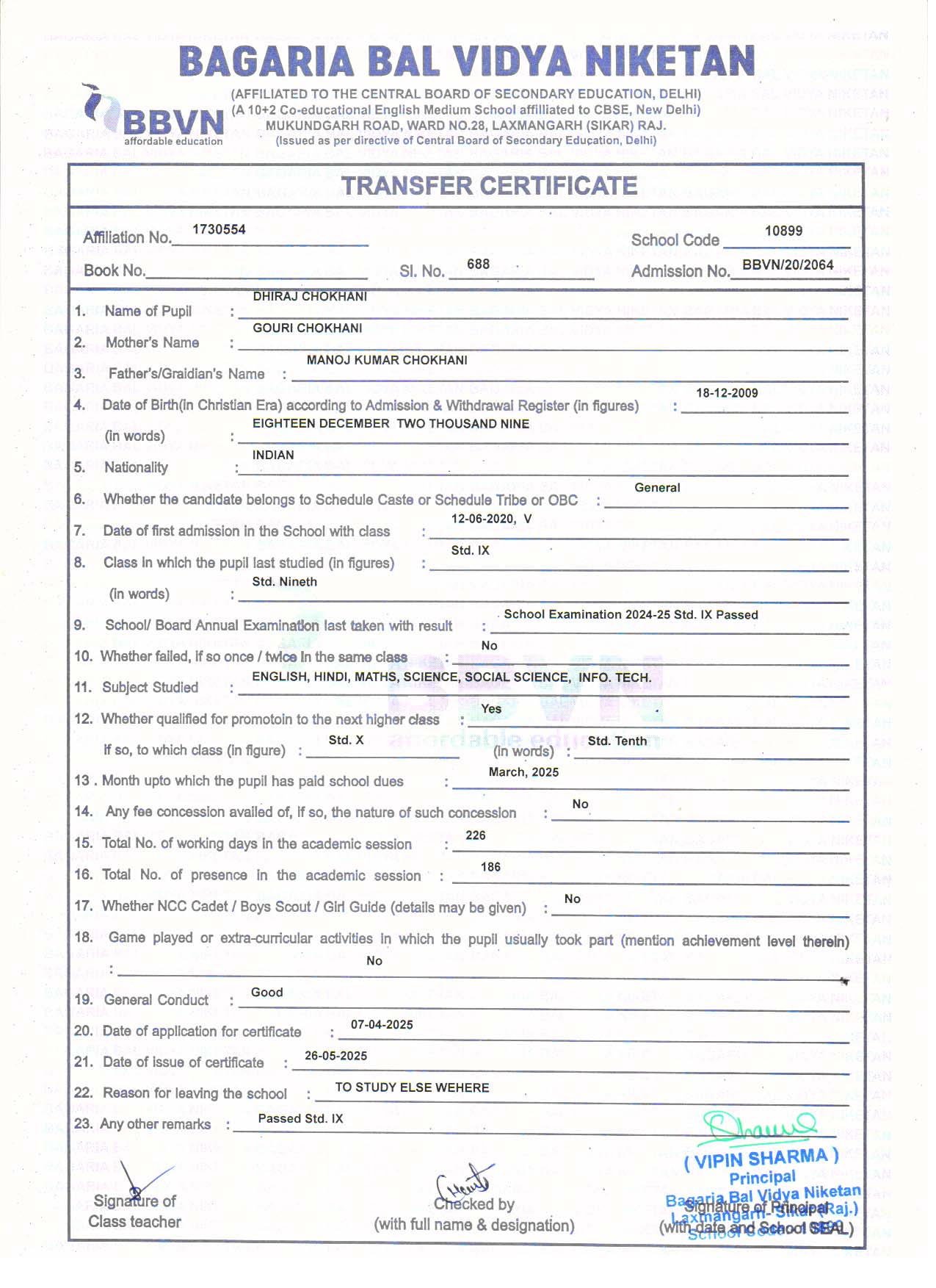 | 69 | HIMANSHU BAGARI | HARI RAM BAGARI | X | Download |