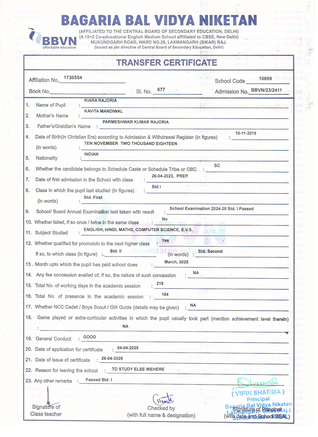 | 4 | KIARA RAJORIA | PARMESHWAR LAL RAJORIA | II | Download |