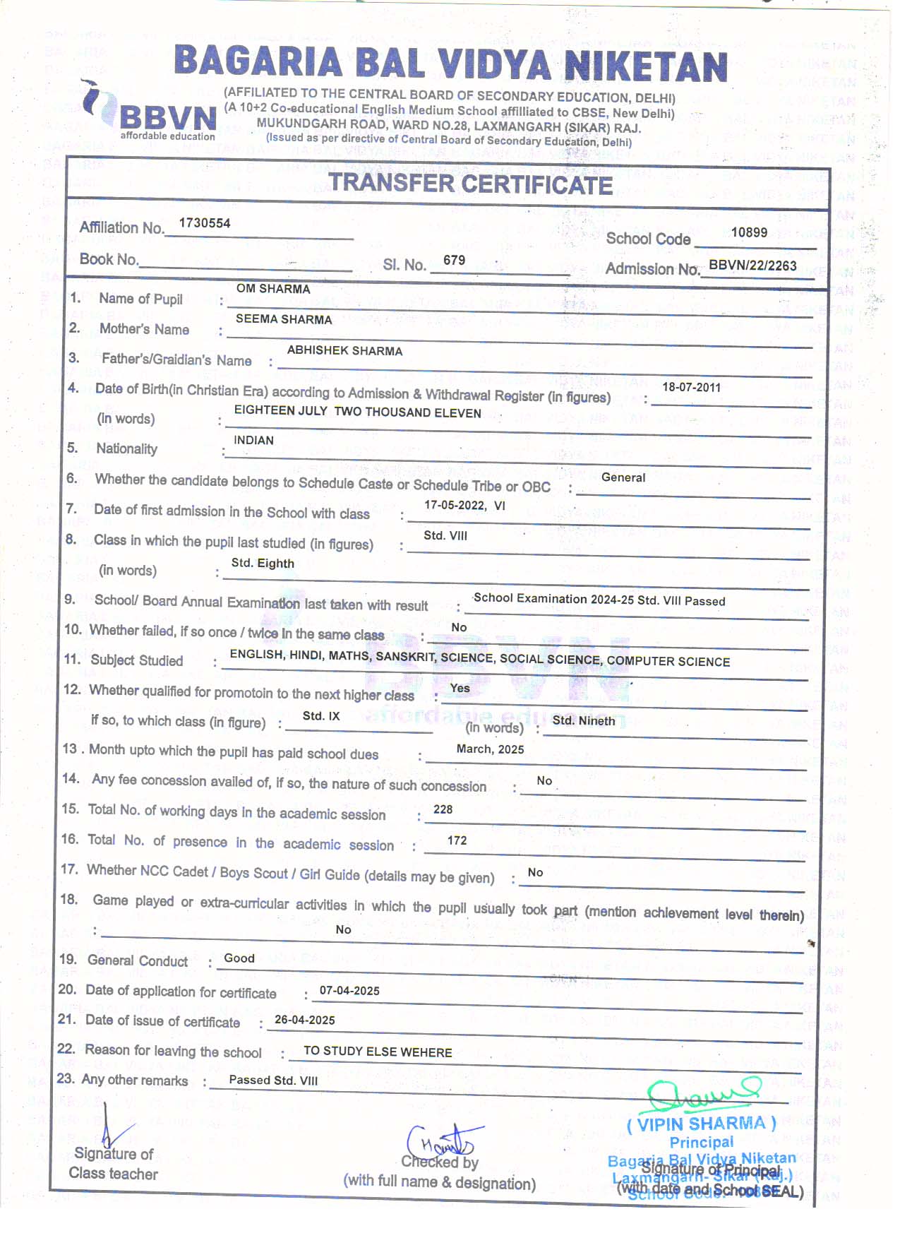 | 12 | OM SHARMA | ABHISHEK SHARMA | IX | Download |